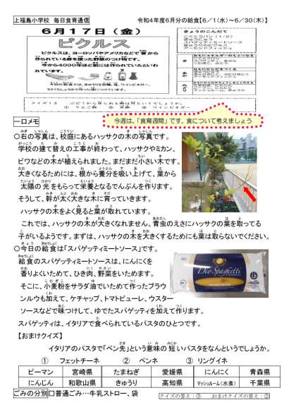 校庭のハッサクが大きくなるまで、葉を取らないようにしましょう。