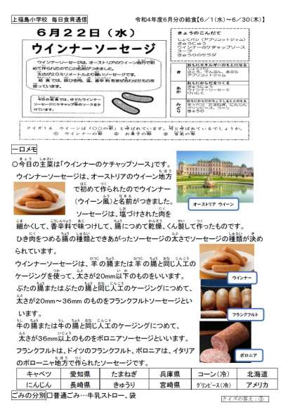 今日の主菜のウインナーソーセージは、オーストリアのウイーン地方で作られました。