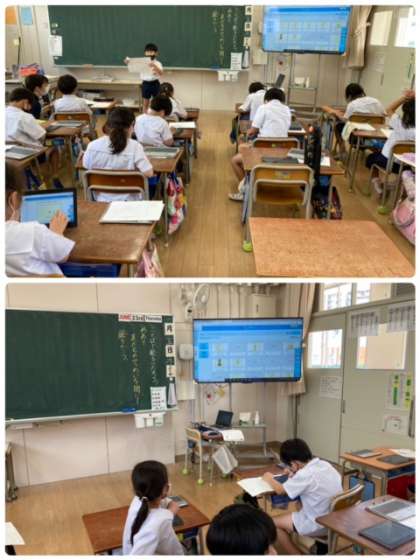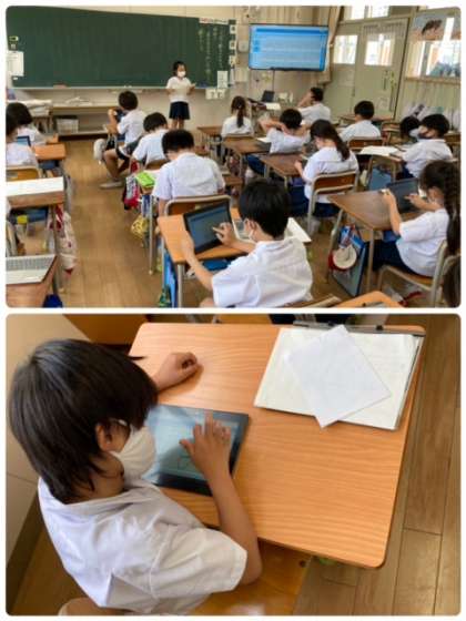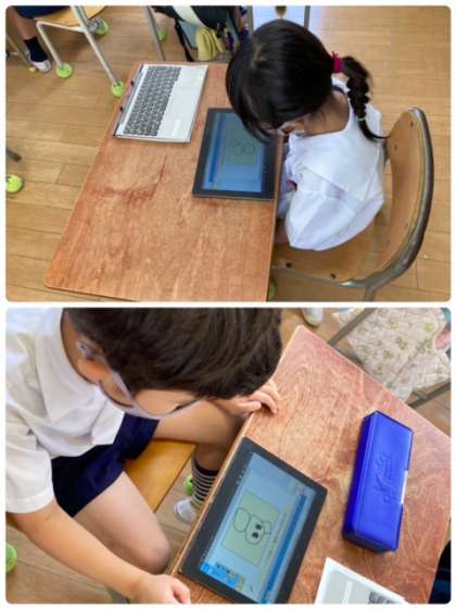 国語科「ことばで絵を伝えよう」の学習で、伝えるものをタブレットに描いて発表しました。タブレットを使ってと言うのが難しいはずですが、みんなよく頑張りました!