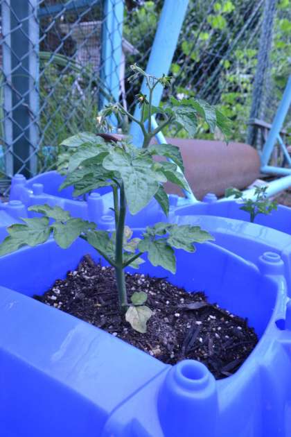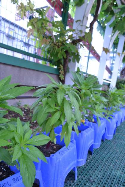 写真は、上から1年生のあさがお、2年生のミニトマト、3年生のホウセンカです。