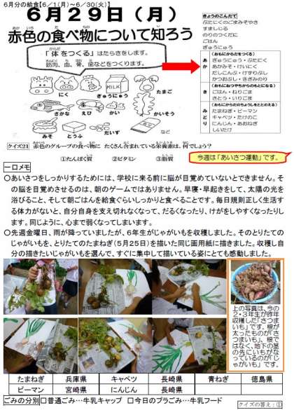 毎日食育通信:6年生が「たまねぎ」に続き、とりたての「じゃがいも」を描きました。(6月29日)