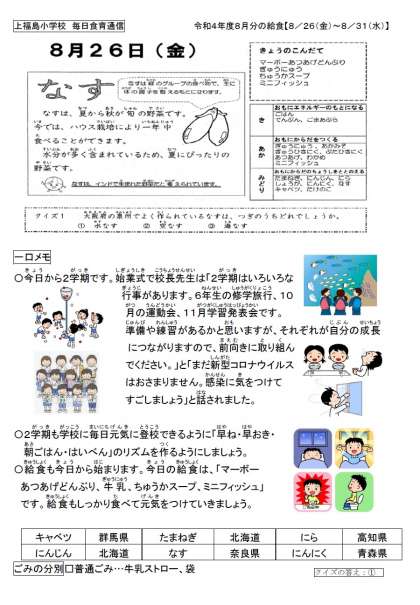 始業式で校長先生は「2学期は行事がたくさんあります。前向きに取り組みましょう。」と話されました。