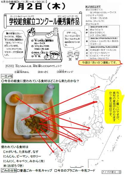 毎日食育通信:今日の給食に使われている食材の産地はどこかな?(7月2日)