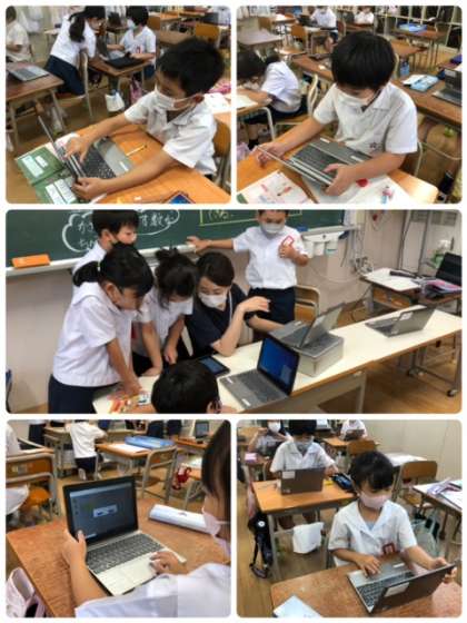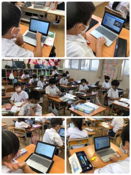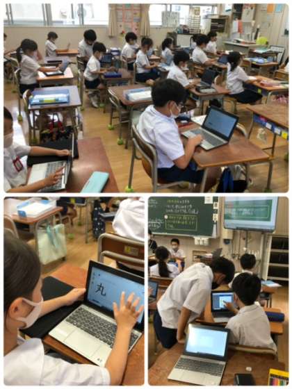 今日も2年2組では、教育利用PCを使って、ドリル学習やプログラミング学習をを行いました。