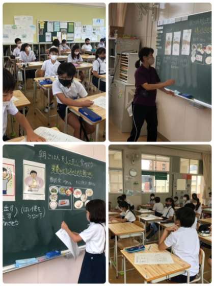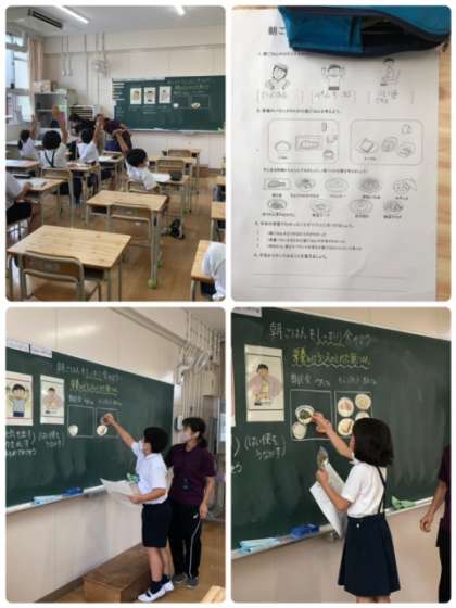 今日は5年生で栄養指導がありました。朝食について学習しました。それぞれの考えた朝食をみんなに発表していました。