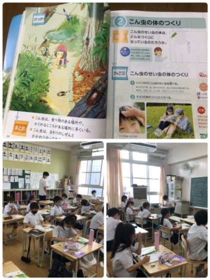 理科で、虫のからだや住処について学習しています。今日はしっかりとワークシートに学習したことを書き、運動場に探検に行きました。