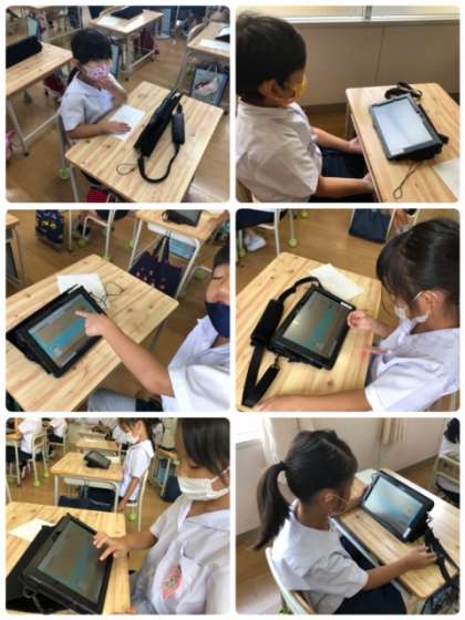 こちらはデジタルドリルに取り組むところです。お互いに助け合いながら操作方法を学んでいきます。