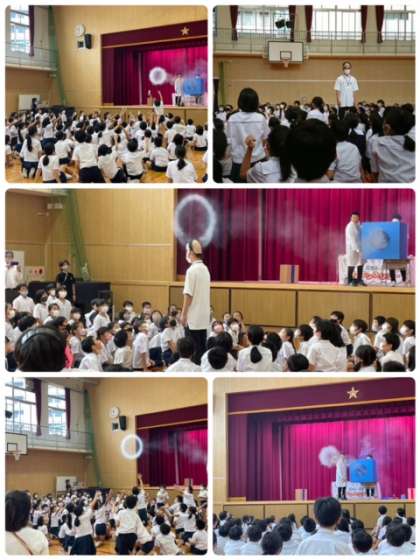空気砲の威力を松竹芸能らしく、海原はるかさんのカツラを用いて実証してくださいました。