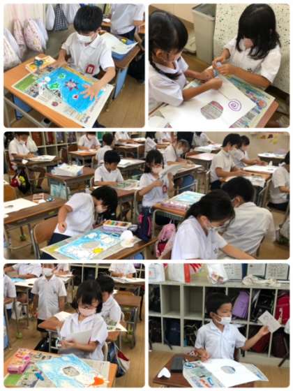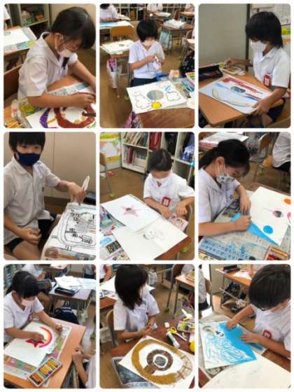 図工科で、あなの向こうは不思議な世界をテーマに制作を進めています。みんな、個性にとんだ作品ができています。