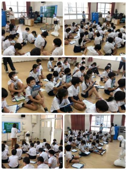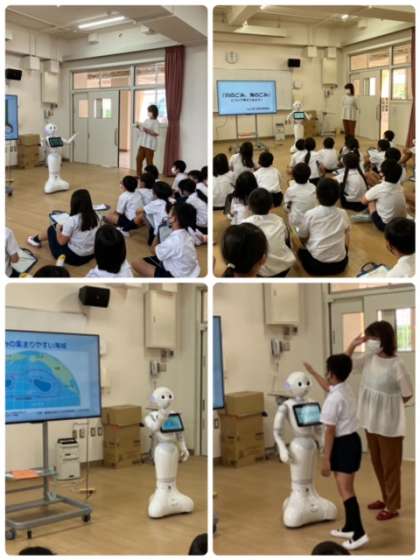 3年生の後は、4年生がペッパーくんとSDGsについて学習しました。海洋ごみについて学習を深めたようです。途中でペッパーくんが居眠りをしてしまうハプニングも!