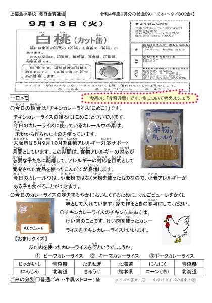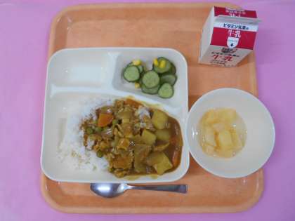 今日のカレーライスのかくし味にりんごピューレが入っています。