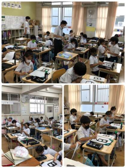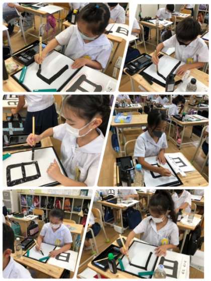 書写の時間に、「日」を書きました。久しぶりの書写に少し戸惑いが見られましてが、一筆一筆丁寧に書いていました。