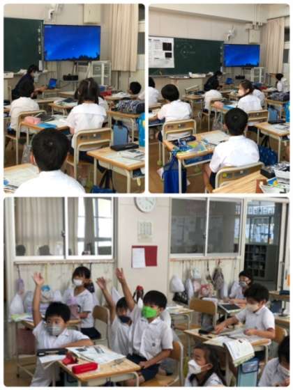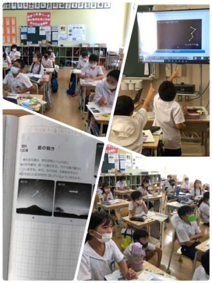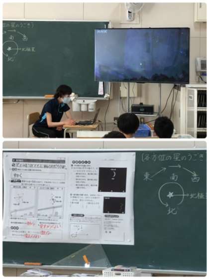 理科で、天体について学習しています。夜の空についての学習のため、デジタル教材を使っています。