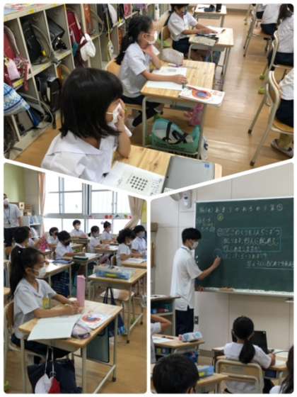 教育実習に来られている山口先生が、3年2組で算数科の授業をしました。子ども達も一生懸命授業に参加していました。