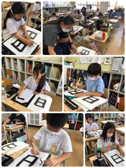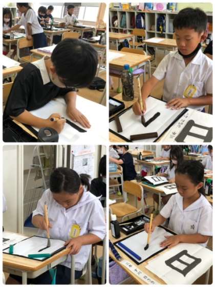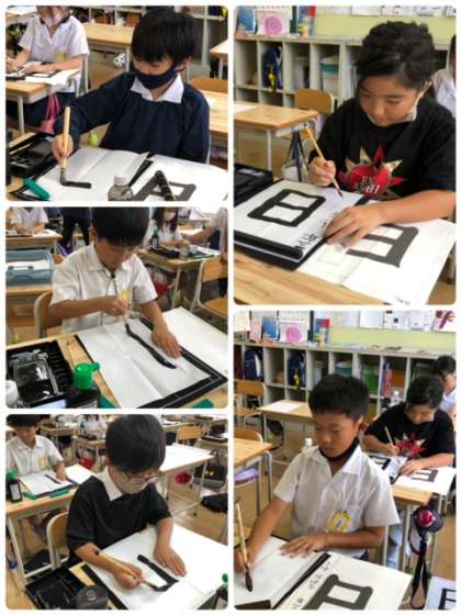 昨日の3年2組に続き、今日は3年1組が習字をしました。いい姿勢で、筆を立てて、丁寧に書きました。