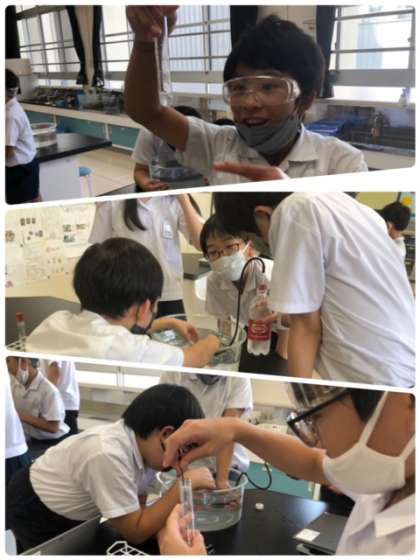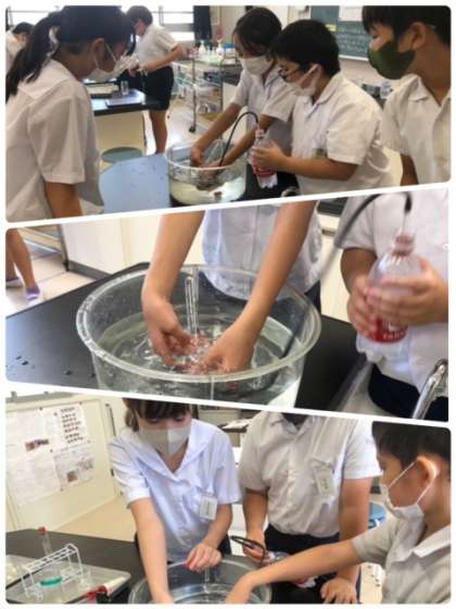 理科の学習で、炭酸水には本当に二酸化炭素が溶けているのかを実験しました。