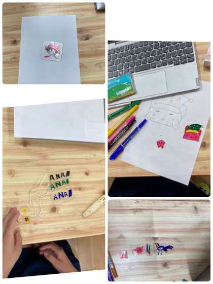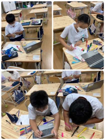 ?今日のものづくりクラブは、プラ板を作りました。丁寧に絵を描いて、色を塗り仕上げました。