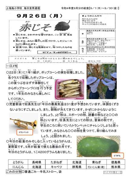 児童朝会で校長先生は「秋に行うことを見つけて取り組んでみましょう」と話されました。」