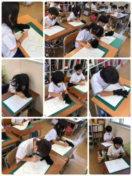 図工科でカッターを使って線を切りました。安全に気をつけて、正しい使い方で取り組みました。