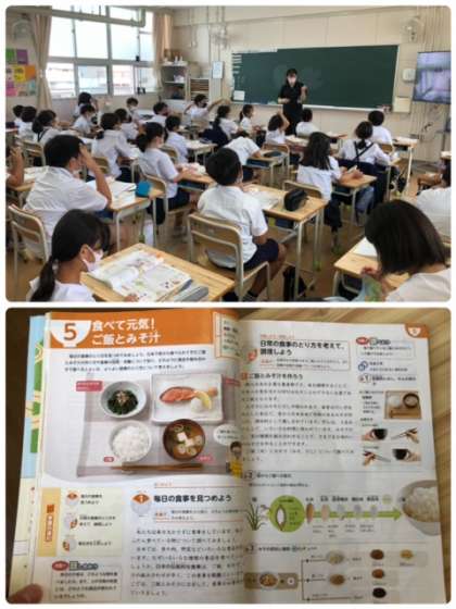 家庭科で朝ご飯の学習をしています。各家庭の朝ごはんは、色々!たくさんの意見を発表していました。