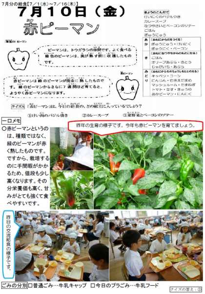 毎日食育通信:今年も赤ピーマンになるまで大事に育てます。(7月10日)