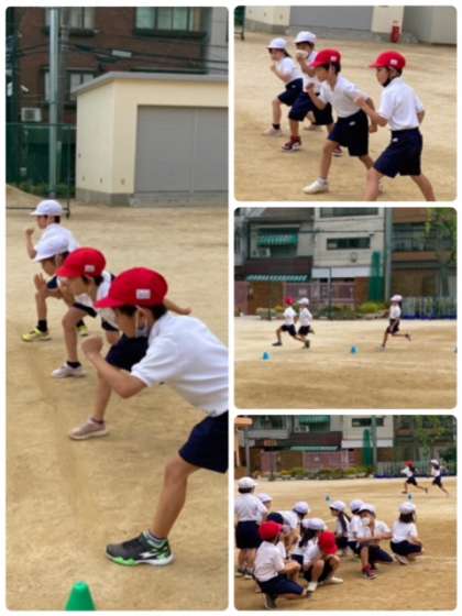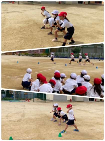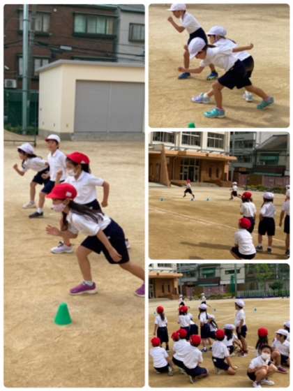 体育ではかけっこ、図工ではちぎってはってと楽しく学習しました。