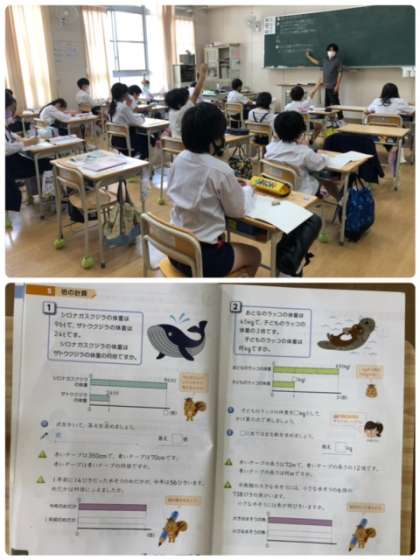 算数科で、何倍を求める学習をしています。どちらをもとにするのか?少し迷っているようです。