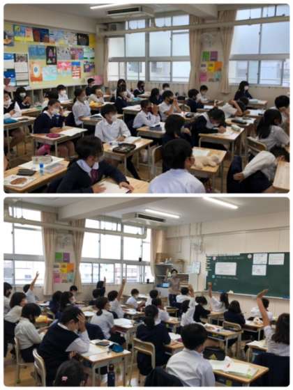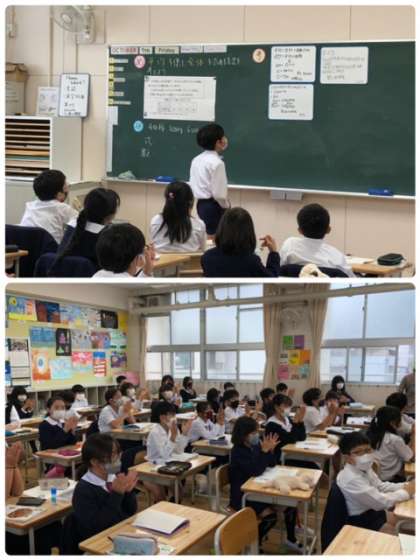 算数科で平均について学習しました。昨日の学習に続き、たくさんの挙手と意見が出ていました。