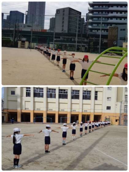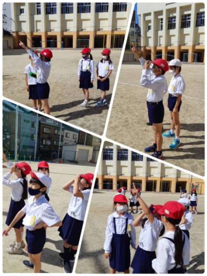 理科の学習です。影はどこにできるのか?自分達の影をもとに考えています。