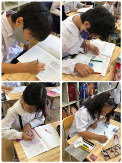 算数科で「小数のたし算」をしました。考え方をしっかりとまとめて、画用紙に書いて発表していました。