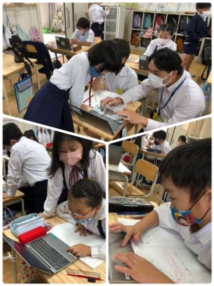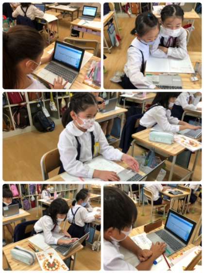 算数科の学習で数直線について学んでいます。タブレットを上手に使いながら、問題に取り組んでいます。