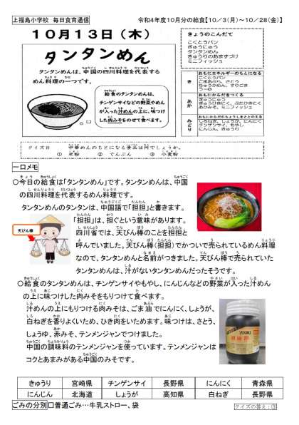 今日の給食は中国四川料理の「タンタンめん」です。