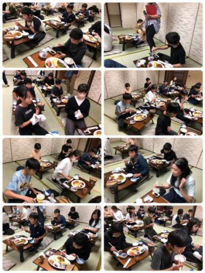 夕食をいただきました。トンカツにお刺身、ミートボールに海老、うどんすきと豪華な夕食でした。