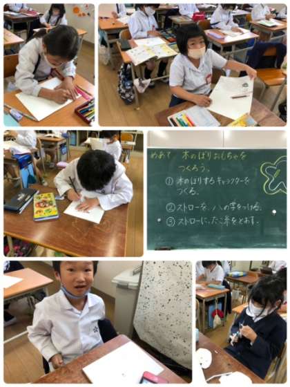 生活科で新しいおもちゃ作りをします。今回は木に登るおもちゃです。何を登らせるのか、ただいま作成中です。