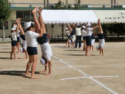 6年生の組み立て体操も、気合十分。一言もしゃべらず、真剣に取り組んでいました。