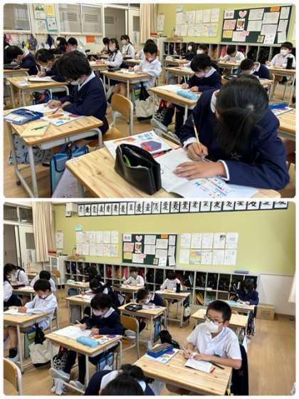?今日は2組の福田先生が1組で算数の授業をされました。子ども少し緊張気味?と思いきや、そうでもなかったようです。