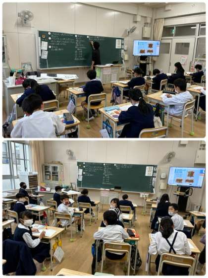 ?今日は2組の福田先生が1組で算数の授業をされました。子ども少し緊張気味?と思いきや、そうでもなかったようです。