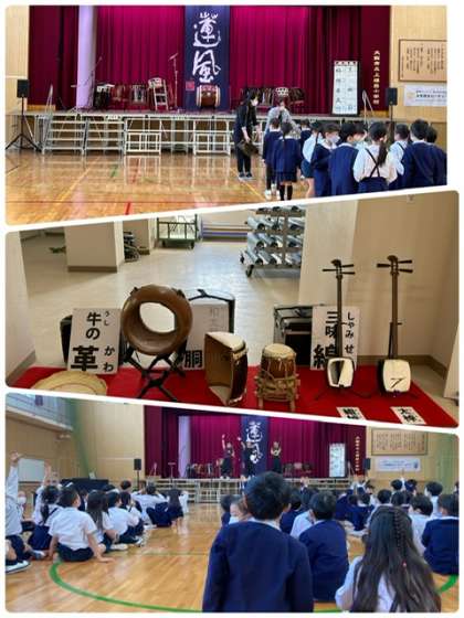 今日は、大阪西北ロータリークラブの皆さんの紹介で、和奏ユニット蓮風の方にお越しいただき和太鼓を中心とした演奏会がありました。その演奏の迫力や、わかりやすい楽器の説明に楽しい時間を過ごしました。
