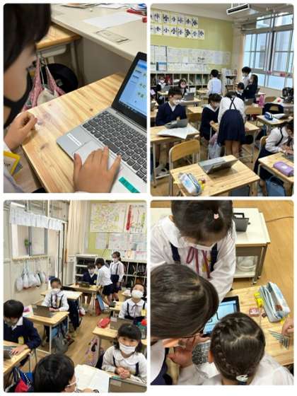 タブレットを使って、しりとりをしています。ただし、ローマ字入力!遊びだけじゃなく、しっかりと学習もしています。