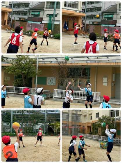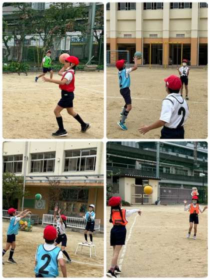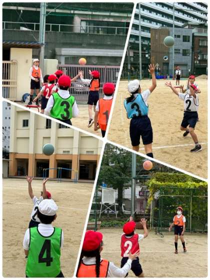 体育科でポートボールをしています。上手くパスを繋ぎゴールを目指します。なかなか思うようにパスが繋がりません!どうしたらいいかなぁ?