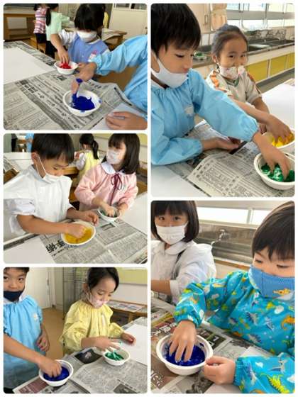 図工科で液体ねんどを使いました。初めての感触に少し困惑しつつも楽しく学習しました!