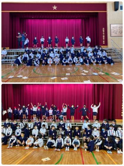 学習発表会が近づくにつれ、練習にも力が入ります!1番の大所帯の1年生!舞台上を所狭しと動き回っています。