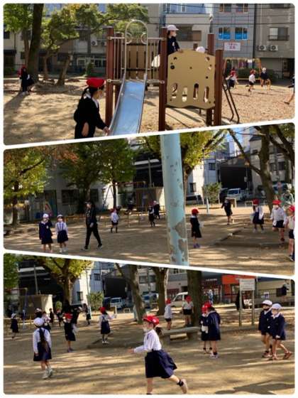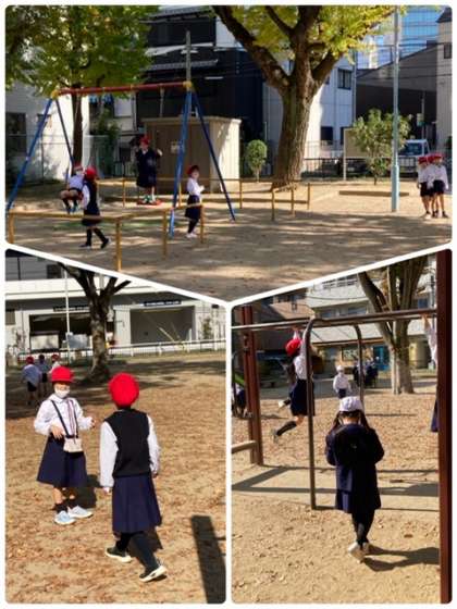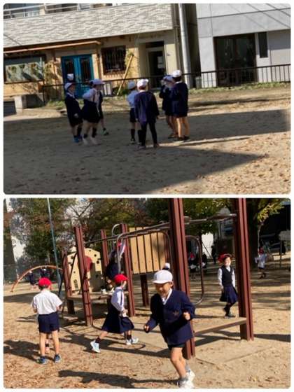 学習発表会の練習の合間をぬって、公園に秋さがしに出かけました。紅葉までは、あと少し!残り時間で遊具などで遊びました。