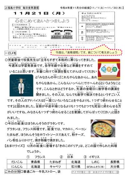 児童朝会で校長先生は「1つずつ終わらせることを意識してがんばってください」と話されました。