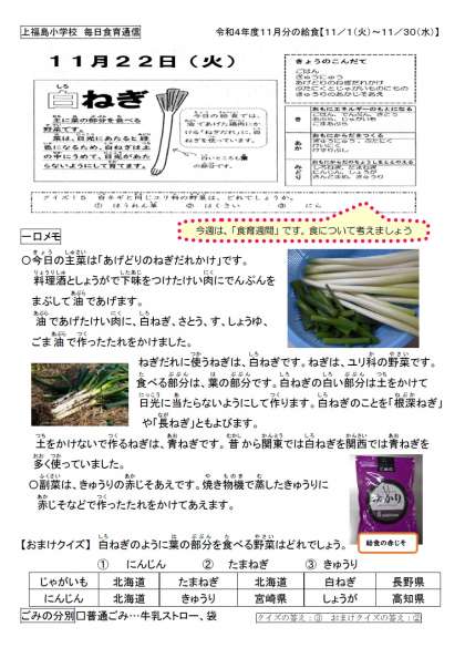 今日の主菜は、白ねぎを使った「あげどりのねぎだれかけ」です。
