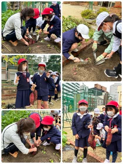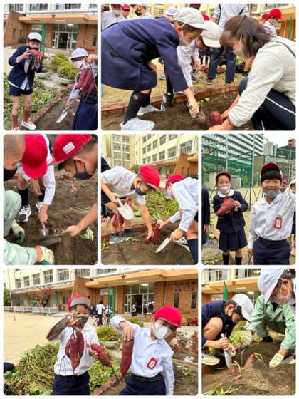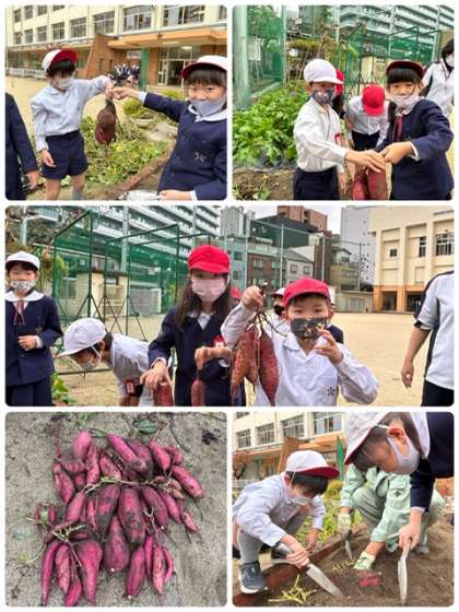 2年生が学習園に植えたサツマイモを収穫しました。とても大きなサツマイモがたくさん取れました。