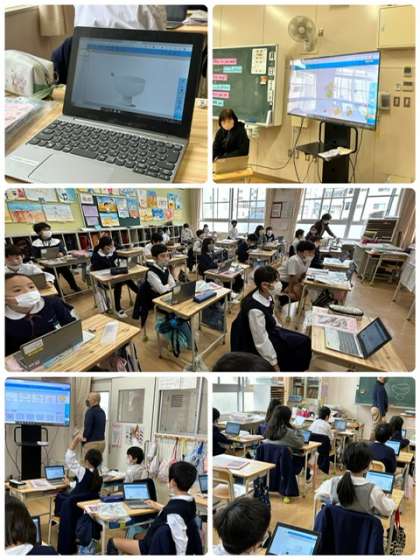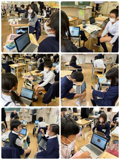 月曜日は、外国語活動の日!4年生では、パフェに入れる具材や数を英語で質問しています。できあがりは、タブレットで見ることができるようです。