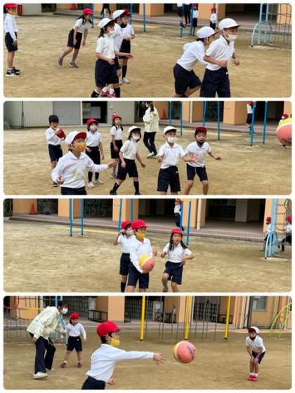 1年1組、2組 ボール運動、器械・器具の運動
