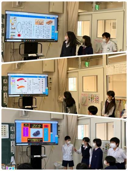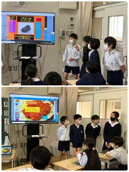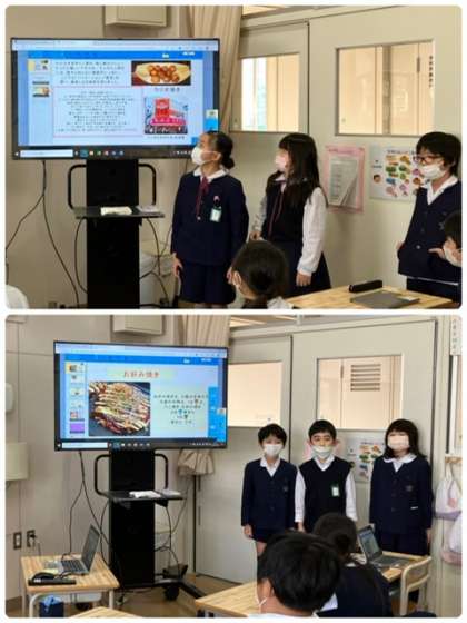 国語で、ふるさとの食を伝えようという単元を、タブレットの発表ノートを使ってグループで発表しました。