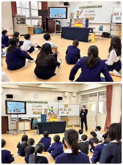 今日は梅田サポートセンターの方にお越しいただき、非行防止について学習しました。万引きやいじめ、喫煙など気をつけるべき事をたくさん教えて頂きました。